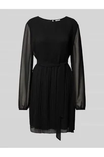 Sukienka damska VILA;Szyfon;Prosty krój;Długość do kolan;Model DALIANA;Okrągły dekolt;Plisy;Bufiaste rękawy;Wiązany pasek;Długość tyłu w rozmiarze 36: 91 cm;Szerokość klatki piersiowej w rozmiarze 36: 51 cm;Długość rękawa w rozmiarze 36: 67 cm