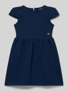 Sukienka dziecięca Guess;Elastyczna mieszanka materiałów z dodatkiem bawełny;Krój regular fit;Aplikacja z logo;Okrągły dekolt;Krótkie rękawy;Zamek błyskawiczny;Fakturowany wzór;Długość tyłu w rozmiarze 116: 59 cm