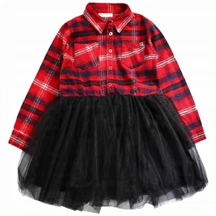 SUKIENKA Tiulowa SPÓDNICZKA Czarna KOSZULOWA Góra CZERWONA W Kratkę 128