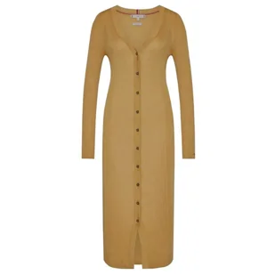 Sukienka Tommy Hilfiger Lyocell Silk Long W WW0WW35889 Właściwości: sukienka marki Tommy Hilfiger doskonała na co dzień dla kobiet długość midi zapinana na guziki dekolt w serek długie rękawy małe logo producenta skład: 90% Lyocell 10% Jedwab Kolor: beżowy