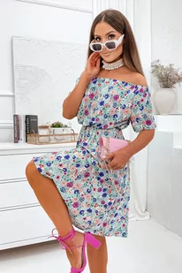 SUKIENKA W KWIATY HISZPANKA Z GUMKĄ W PASIE- TURKUSOWAM/L