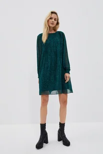 100%POLIESTER. Luźna, prosta sukienka uszyta w dwóch odcieniach zieleni. Na całości ciekawy print w postaci nieregularnych kształtów. Długość przed kolano. W...