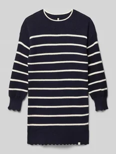 Sukienka z dzianiny dziecięca Only;Model ‘Ibi’;Efekt: Wzór na całej powierzchni;Krój: Krój regular fit ;Dekolt: Okrągły dekolt;Wzór: w paski;Rękaw: