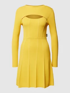 Sukienka z dzianiny damska HUGO;Mieszanka wiskozy ze streczem;Taliowany krój;Jednolity kolor;Okrągły dekolt z prążkowanego ściągacza;Design z długim rękawem;Wycięcie;Detal z logo;Długość tyłu w rozmiarze S: 89 cm;Szerokość klatki piersiowej w rozmiarze S: 34 cm;Długość rękawa w rozmiarze S: 64 cm