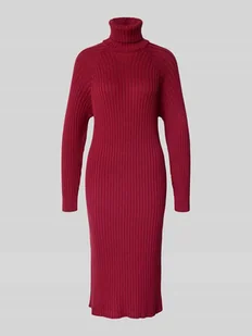 Sukienka z dzianiny damska YAS;Mieszanka bawełny;Dopasowany fason;Sukienka midi;Model ‘MAVI’;Golf;Prążkowana faktura;Długość tyłu w rozmiarze S: 110 cm;Szerokość klatki piersiowej w rozmiarze S: 42 cm;Długość rękawa w rozmiarze S: 63 cm