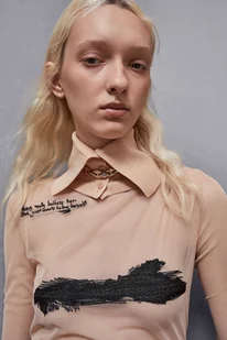 Elegancka tiulowa sukienka z falbankami od marki Patrizia Pepe z odważnym haftem w kontrastowym kolorze. Idealna do oryginalnych i nowoczesnych stylizacji.