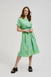 Opis produktu 100%WISKOZASukienka damska wykonana z lekkiej wiskozy, idealna na ciepłe dni. Posiada okrągły dekolt, wiązanie w talii podkreślające figurę oraz rozkloszowany fason, który dodaje lekkości i swobody ruchom. Krótkie podwijane rękawy dodają uroku, a tropikalny wzór w odcieniach turkusu nadaje świeżości i energetyzuje stylizację. Ta sukienka sprawdzi się doskonale na letnie spotkania, plażę czy wieczorne wyjścia. Można ją zestawić z sandałami na płaskim obcasie i słomkowym kapeluszem dla casualowego looku, albo z eleganckimi szpilkami i biżuterią na wieczór.