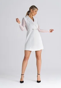 Sukienka żakietowa - sukienka z guzikami z przodu - sukienka ecru - rozmiar XL