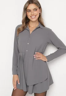 Szara Asymetryczna Sukienka o Koszulowym Kroju z Gumką w Talii Elodina