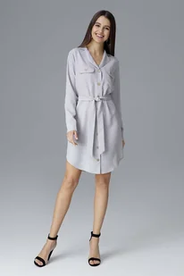 Szara Koszulowa Sukienka z Wiązanym Paskiem