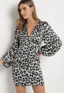 Szara Sukienka Taliowana w Panterkę Suzamera