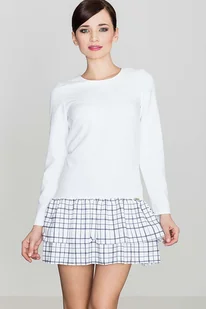 Szara Sukienka z Podwójna Falbanką w Kratę