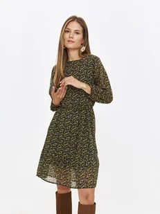 Sukienka damska Top Secret o bardzo luźnym kroju. Ceniona za lekkość oraz subtelny urok sukienka damska o luźnym kroju i długości przed kolano. Posiada ona proste rękawy o długości ? zakończone luźną gumką oraz okrągły dekolt z ozdobną lamówką wokół. Dużego uroku dodaje jej odcięcie w talii wraz z paskiem z tego samego materiału, które podkreśla smukłość kobiecej sylwetki. Została ona uszyta z przewiewnej oraz delikatnej dzianiny, wzbogaconej o nadruk na całości z drobnym wzorkiem.