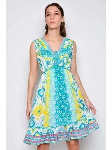 Tarifa Sukienka w kolorze żółto-turkusowo-białym