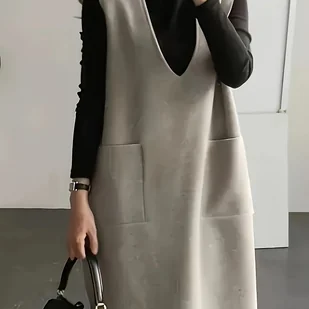TEMU Damska Sukienka Bez Rękawów z Kieszenią na Przodzie - Elegancka, Jednokolorowa, z Paskiem, Poliestrowa Mieszanka, Możliwość Prania Ręcznego,