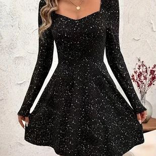TEMU Damska wiosenno-jesienna dopasowana sukienka z cekinami, elegancka suknia wieczorowa z długim rękawem