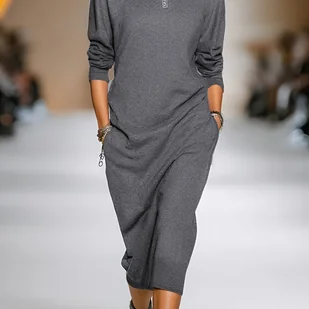 TEMU Damski Szary Oversize Długi Rękaw Sukienka A-Line z Kieszeniami - Ciepła Zimowa Casual do Półformalnego Stylu, Niegnąca się Okrągły Kołnierz na