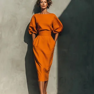 TEMU Elegancka Sukienka A-Line z Dekoltem Łódką dla Kobiet - Jednokolorowa Pomarańczowa, Krótka do Średniej Długości, Dopasowana, Pranie w Praniu