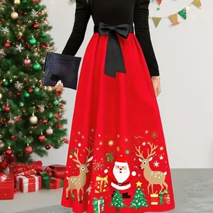 TEMU Elegancka Damska Sukienka Świąteczna, Długa Sukienka z Nadrukiem na Sylwestra, Stylowy Strój Świąteczny na Imprezy i do Noszenia na Co Dzień.