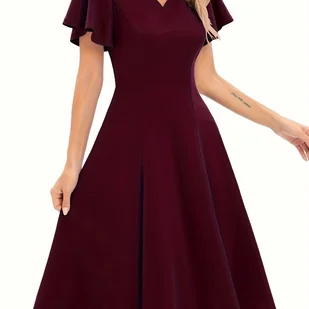 TEMU Elegancka Sukienka Damska na Wiosnę i z Dekoltem w Kształcie , Falbankami na Rękawach i Szerokim Dołem