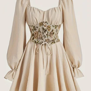 TEMU Elegancka Sukienka z Dekoltem w Serduszko i Wiト�zaniem z Przodu - DナVgi Rト冖aw, Midi, Jednokolorowa na Jesieナ�/Zimト�, ナ嗟uby, Przyjト冂ia i Specjalne