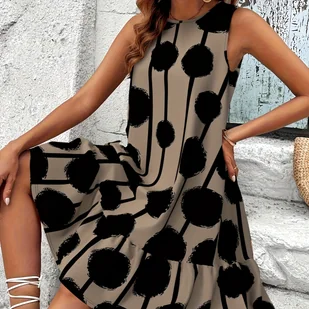 TEMU Elektryczna Sukienka Damska, Styl Wypoczynkowy z Falbanką i Geometrycznym Wzorem, Miękki i Gładki Materiał
