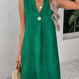 TEMU Kobieca Elegancka Sukienka z Dekoltem w Serek na Guziki, Jednokolorowa