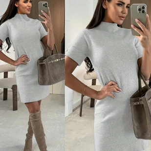 TEMU NS702 Sukienka Damska Jednokolorowa z Guzikami i Wysokim Kołnierzem, Na Każdą Porę Roku, Sukienka Średniej Długości