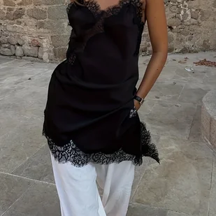 TEMU Seksowna sukienka damska na ramiączkach spaghetti z koronką - Elegancka koronka, dopasowany krój na imprezę i formalne okazje, wiosenno-jesienna