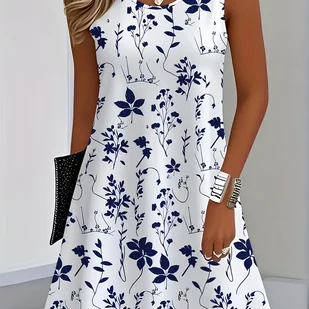 TEMU Spódniczka damska w kwiaty granatowo-biała - A-Line, letnia sukienka na imprezy i casual - Pranie maszynowe, nieprześwitująca tkanina, okrągły