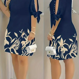 TEMU Sukienka Damska z Kwiatowym Nadrukiem, Frędzlami i Koralikowymi Wzorami. Idealna na Wakacje, Wypoczynek, Codzienne Noszenie i Różne Spotkania