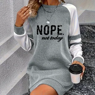 TEMU Sweterowa Sukienka Damska - Długi Rękaw, Od Biura do Imprezy, Miękkie Szaro-Białe Kolorowe B, Okrągły Dekolt, Casualowa Stylizacja na Codzienne