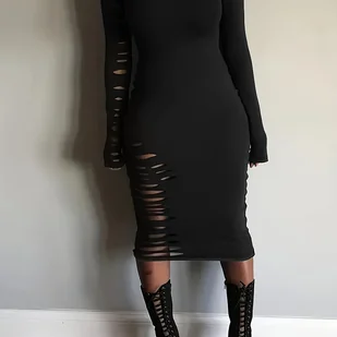 TEMU Wiosenno-Jesienna Sukienka Bodycon z Wycięciami, Casual Okrągły Dekolt Długi Rękaw, Odzież Damska