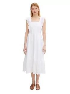 TOM TAILOR Denim Damski Sukienka midi z haftem z dziurkami 1031394, 20000 - White, XXL