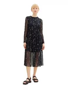 TOM TAILOR jeansowa damska sukienka siateczkowa ze wzorem, 34261-nadruk z czarną literą, M