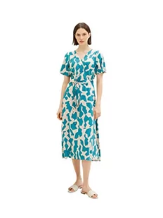 TOM TAILOR Sukienka damska ze wzorem i paskiem, 32146 - Petrol Big Abstract Design, 34
