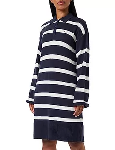 Tommy Hilfiger Damska miękka wełniana sukienka polo, Breton Stp/Desert Sky/Ecru, 3XL