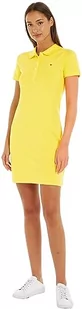 Tommy Hilfiger Damska sukienka polo 1985 Slim Pique SS, żywy żółty, XL, Żywy żółty, XL