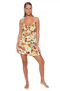 Trendyol Damska odzież plażowa o regularnym kroju tkana sukienka, zielono-wielokolorowa, 40, Zielony-wielokolorowy, 38