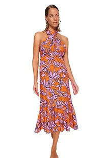 Trendyol Damska podstawowa dopasowana sukienka tkana, fioletowo-wielokolorowa, 40, Fioletowo-wielokolorowy, 38