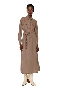 TRENDYOL Damska sukienka damska mini standardowa dekolt w serek, beżowy, M