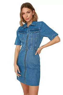 Trendyol Damska sukienka dżinsowa z zamkiem błyskawicznym, niebieski, 34