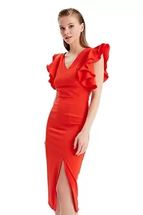 Trendyol Damska sukienka midi dopasowana tkana, Kwiat granatu, 64