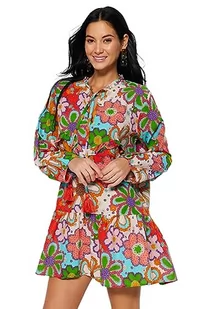 Trendyol Damska sukienka o regularnym kroju, zielona, wielokolorowa, 40, Zielony-wielokolorowy, 38