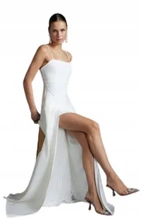 TRENDYOL DŁUGA SUKNIA ELEGANCKA BIAŁA Z ROZCIĘCIEM 36 5BA