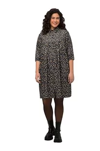 Ulla Popken Damska sukienka w kwiaty ze sztruksu, czarny, 54/56