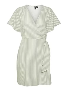VERO MODA Sukienka damska Vmmymilo Ss Wide Wrap Knee Dress WVN Ga, Reseda/paski: śnieżnobiały, S