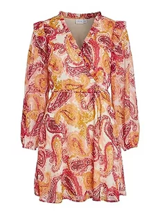 Vila Damska sukienka letnia Vifalia Fine V-Neck L/S, Love Potion/Aop:fine, 44