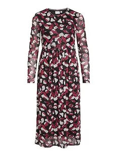 Vila Damska sukienka letnia Vivoletta Lau L/S Midi Dress/Su, Czarny/Aop: iben, XS