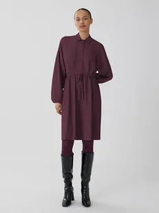 Sukienka "Visurashil" w kolorze bordowym - z poliestru pochodzącego z recyklingu - kołnierz: kent - zapięcie: skrócona listwa guzikowa - krój rękawów: bufiasty - zakończenie rękawów: elastyczne - talia: